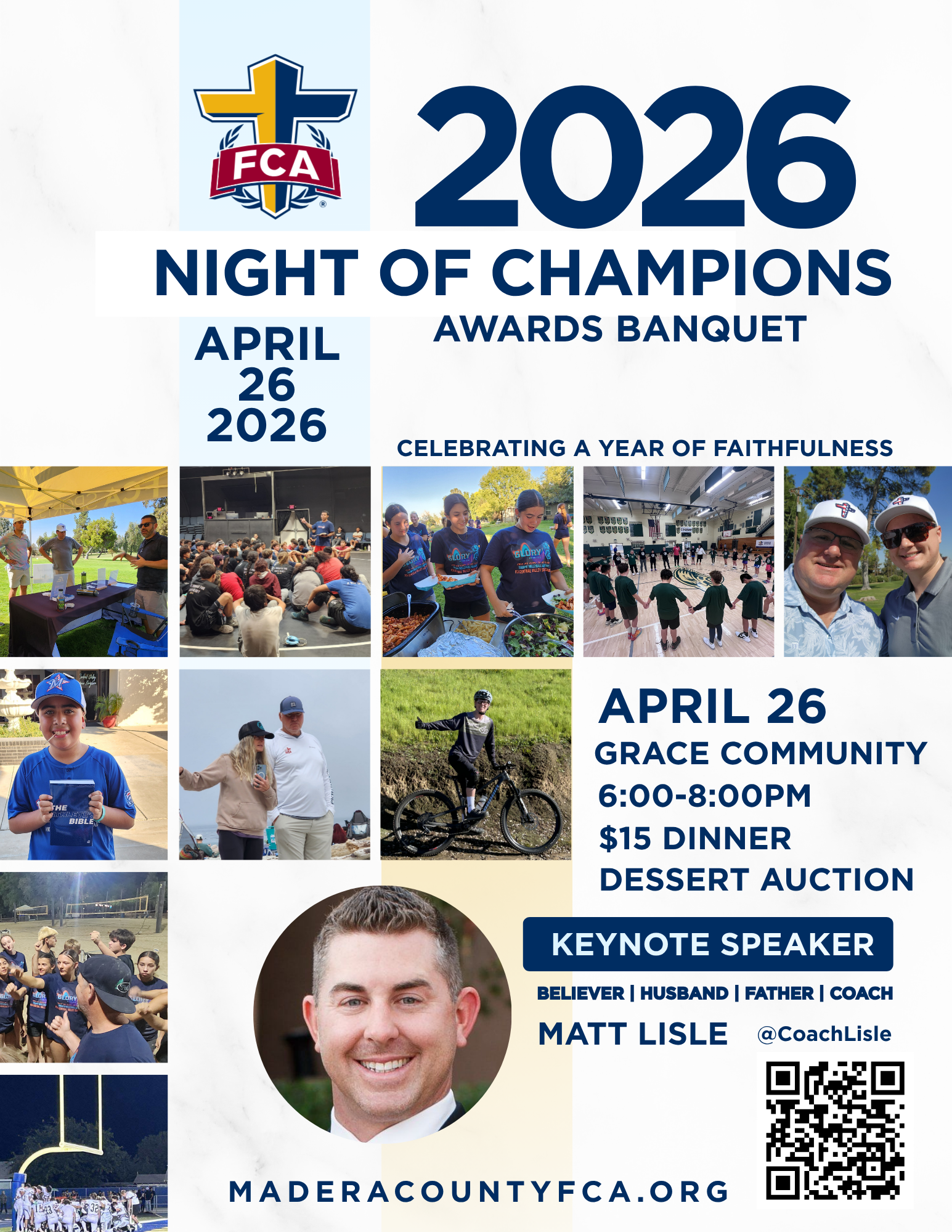 Join us on Sunday, April 26 for this years end of the year FCA Awards banquet. 6:00pm at Grace Community Church in Madera, Ca.